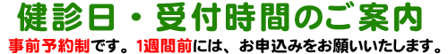 健診受付時間は13時30分から15時00分です。